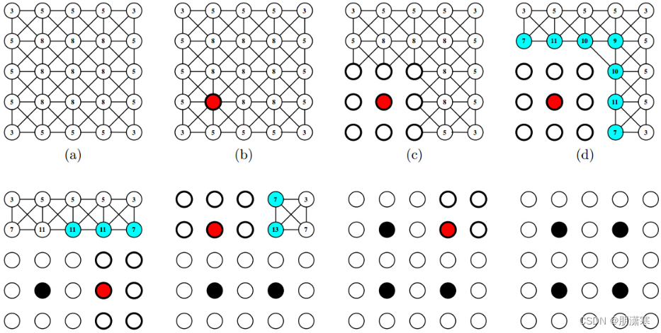 - 选取当前图上未被分类的点中权重最大的点,将其加入粗网格格点集,将其所有邻居加入细网格格点集;