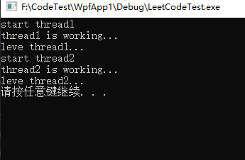 可以看到线程1和线程2都完整执行了。因为创建的事件是需手动Reset才会无信号的,所以执行完线程1后事件仍处于有信号状态,所以线程2才能被继续执行