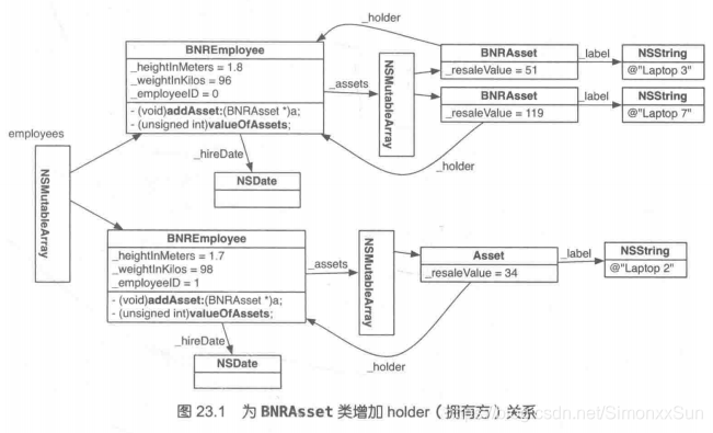 @property (nonatomic, weak) Employee *holder;或