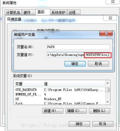 另外为了操作方便,可以将GOPATH下的bin目录也添加到Path环境变量的末尾,因为使用go get 命令的时候会将编译后的文件放在GOPATH目录下的bin中