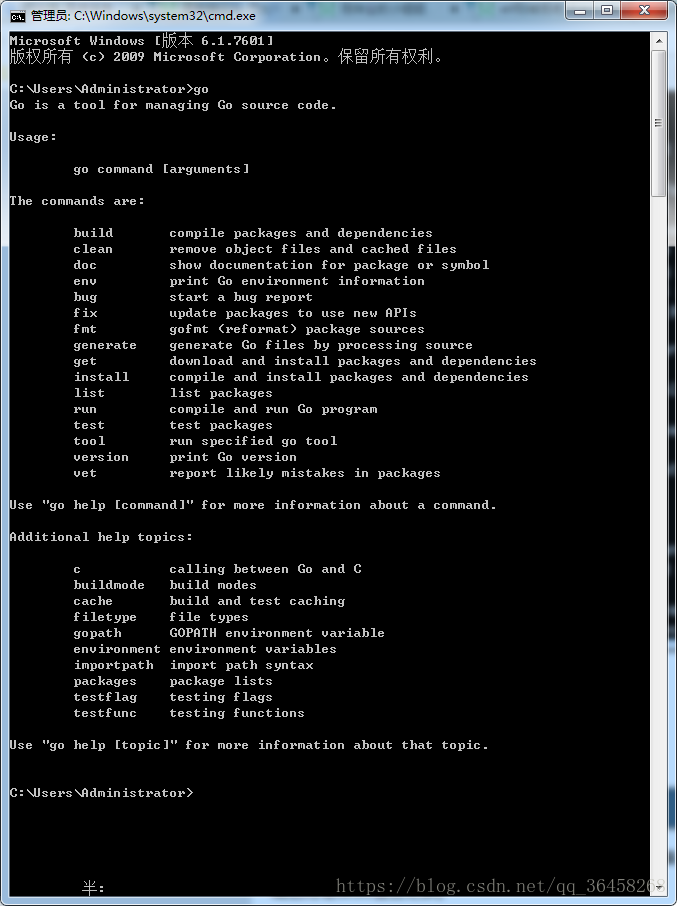 输入go version,显示安装版本号