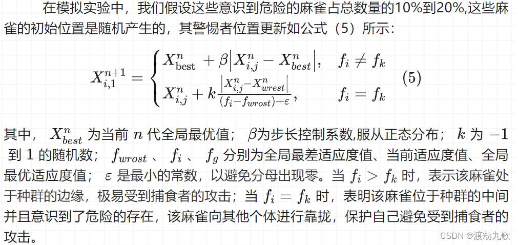 (2) 一旦麻雀发现捕食者,它们就会发出啁啾声,发出警报信号。当报警值大于安全阈值时,发现者需要将所有搜捕者带到安全区域。
