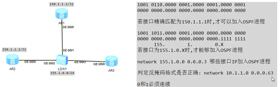 network 12.1.1.0 0.0.0.255 将12.1.1.0网段的LSA信息宣告进OSPF网络中
