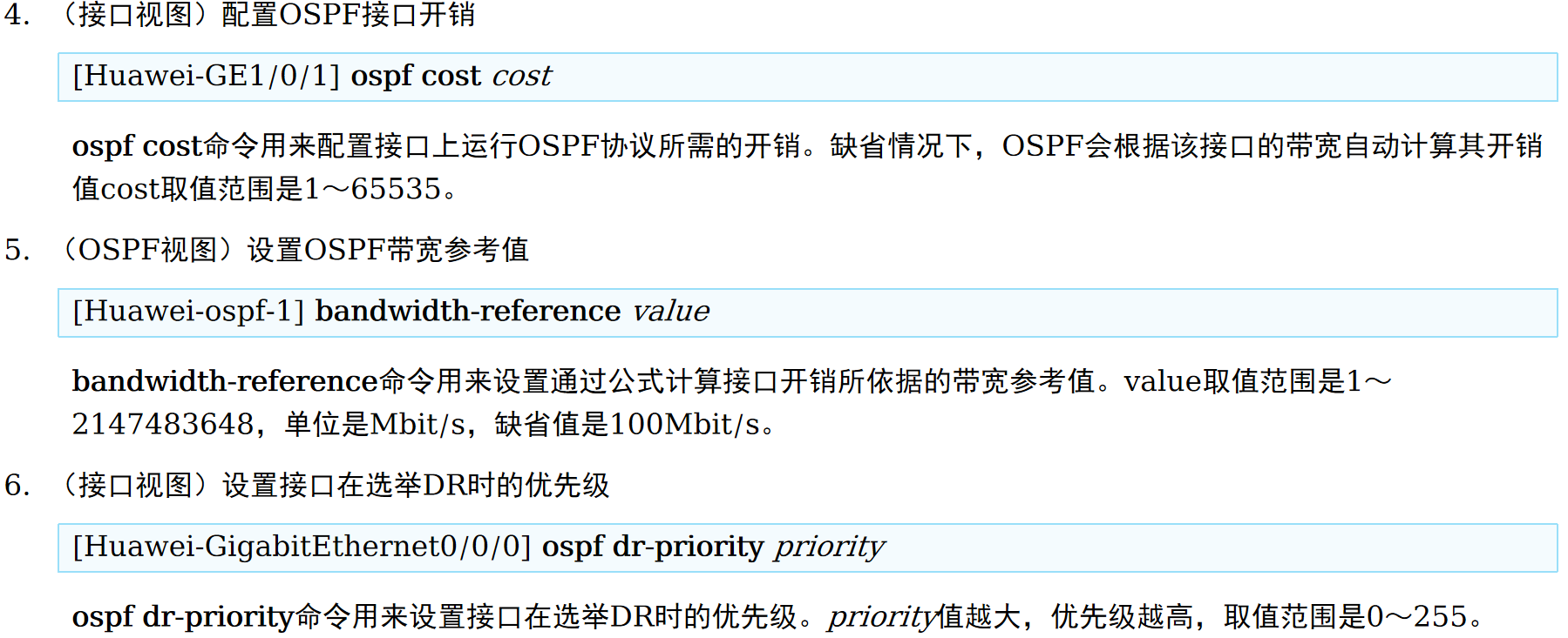 1、[Huawei-ospf-1]bandwidth-reference 修改参考带宽