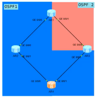 上图中,AR1的g0/0/0口和AR2的g0/0/0口属于同一个网段,不管这两个接口进程号是否相同,都能建立邻接关系。
