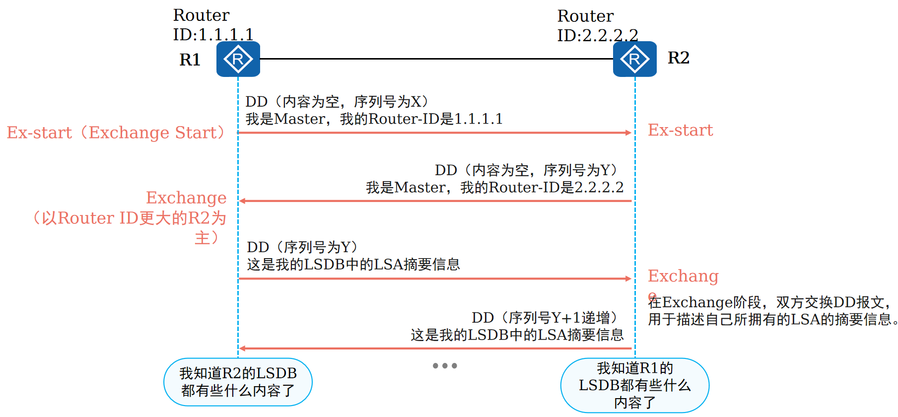在exstart状态下不携带任何的LSA信息,主从选举中选route id大的为主路由器