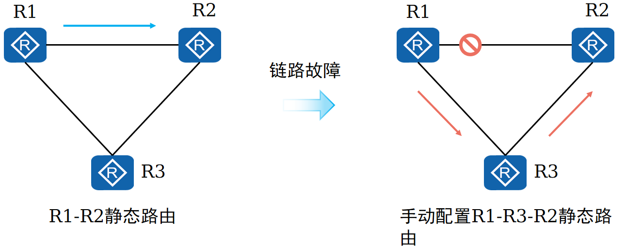 静态路由是由工程师手动配置和维护的路由条目,命令行简单明确,适用于小型或稳定的网络。静态路由有以下问题:
