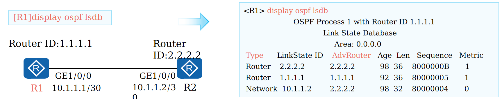 LSDB会保存自己产生的及从邻居收到的LSA信息,本例中R1的LSDB包含了三条LSA。