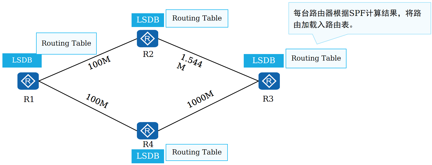 最后,路由器将计算出来的优选路径,加载进自己的路由表(Routing Table)。