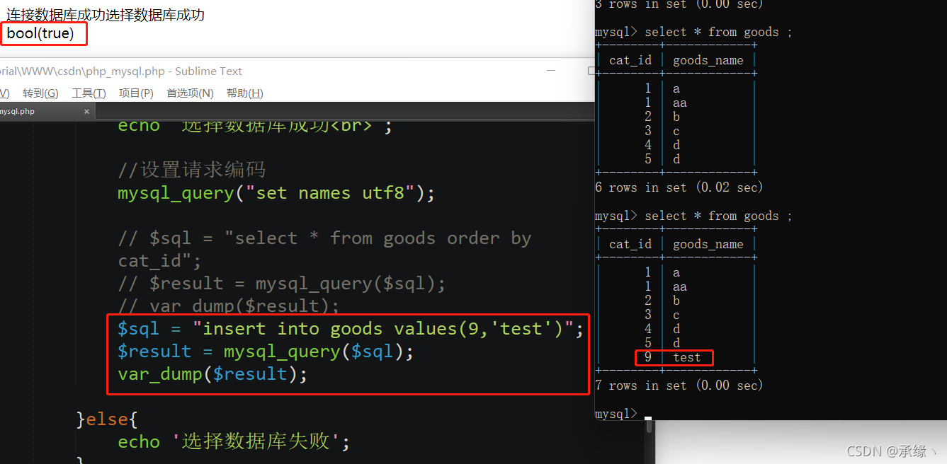 返回值:如果执行的是select、show、desc命令,成功就返回资源值,失败返回false。如果执行的是其他sql语句,成功返回true,失败返回false。