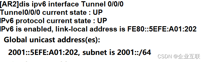 ipv6 route-static 2002:: 16 Tunnel 0/0/0 配置一条指向2002前缀的路由