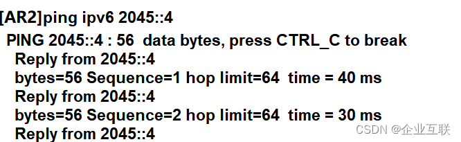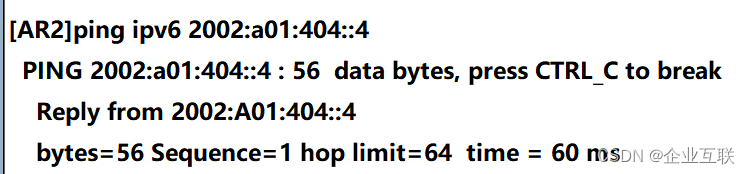 如果想要和不是2002前缀的进行通信,需要在AR2上进行静态配置,因为R6已经有了通往R2的路由:ipv6 route-static 2067:: 64 2002:A01:606::6