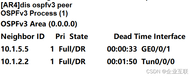 ospfv3 peer router-id 10.1.2.2 FE80::5EFE:A01:202 指ospfv3的ID 和本地地址