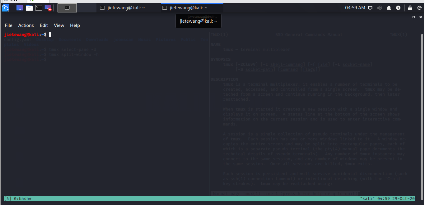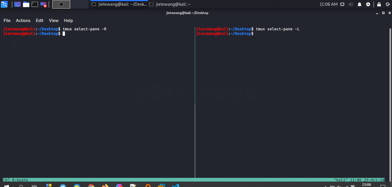 tmux 可以划分多个窗格(pane),每个窗格运行不同的命令。 要控制窗格那一下出现的命令都是在窗格中执行的。