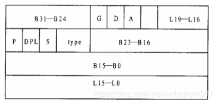 段描述符表项:是一个8字节长的数据结构,用来描述一个段的位置、大小、访问控制和状态等信息,其中最基本内容是段基址和边界。段基址以4字节表示(图中可看出3,4,5,8字节); 段边界20位表示(1,2字节及7字节的低四位)。