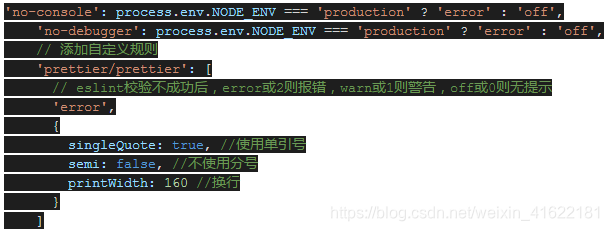 4.自定义规则,在 .eslintrc 中覆盖prettier规则