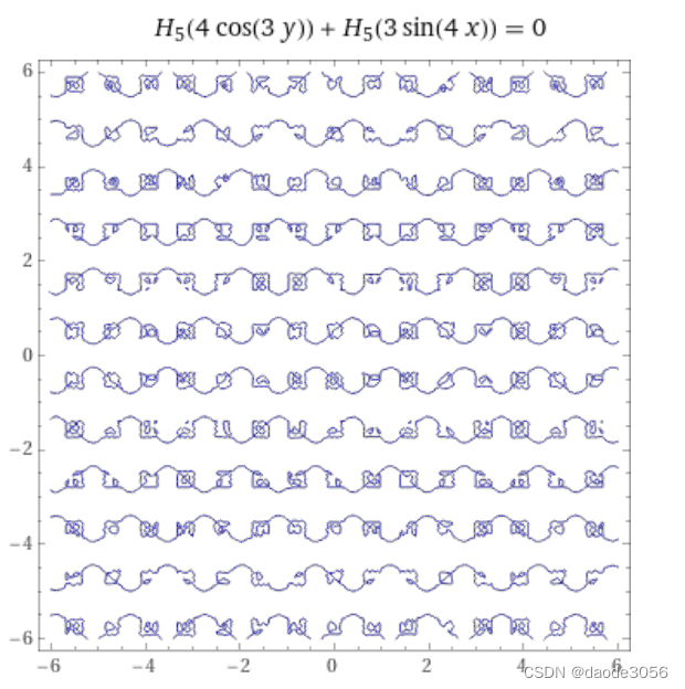 一,厄米多项式(Hermite polynomial)与三角函数的融合,构建了隐式方程,此方程在局部范围,呈以下图像: