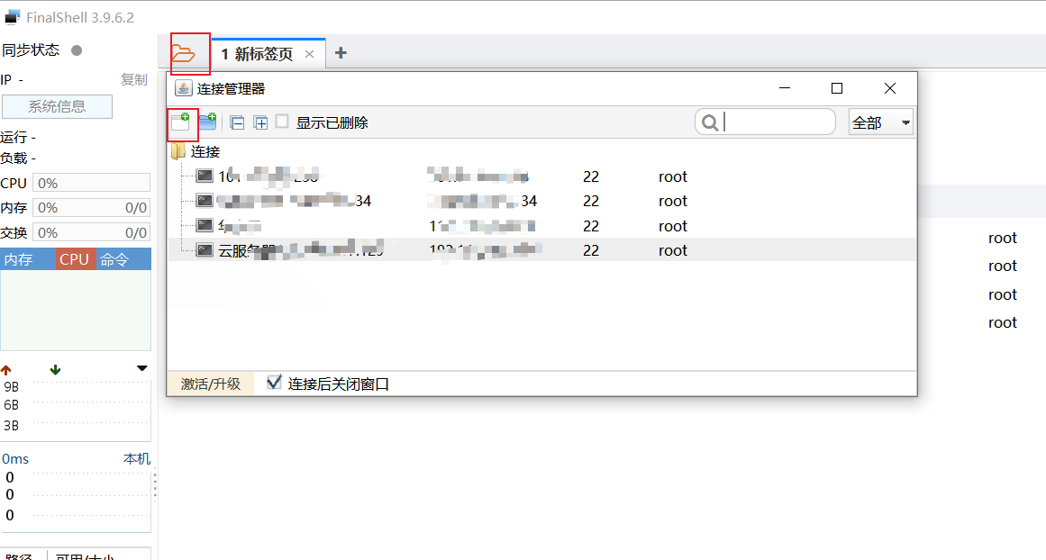 可以在网上搜索“FinalShell下载安装”,进行下载,下载完成后新建SSH连接: