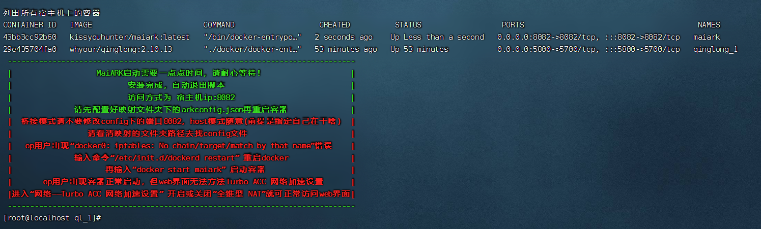 cd mkdir ql_2 && cd ql_2 docker run -dit \ -v $PWD/ql/config:/ql/config \ -v $PWD/ql/log:/ql/log \ -v $PWD/ql/db:/ql/db \ -v $PWD/ql/repo:/ql/repo \ -v $PWD/ql/raw:/ql/raw \ -v $PWD/ql/scripts:/ql/scripts \ -v $PWD/ql/jbot:/ql/jbot \ -p 5802:5700 \ --name qinglong_2 \ --hostname qinglong_2 \ --restart unless-stopped \ whyour/qinglong:2.10.13注意:命令里-p左边端口是服务器对外的端口,建议别设置成5700,防止被人扫。右边5700是容器映射端口不能改, 固定是5700.