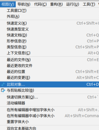 还有对比代码的功能。操作为:依次点击下图高亮选项。