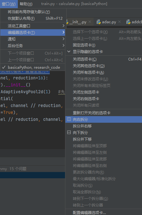 而pycharm自身就带有“分屏操作”的功能,分屏后,视野里可以同时出现同一代码文件的两个部分。达到一边改import包中代码,一边看本文件是否修复的功能。