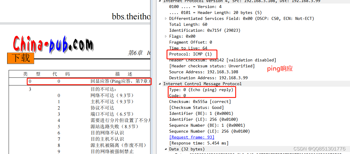 I C M P报文中的标识符和序列号字段由发送端任意选择设定,这些值在应答中将被返回。这样,发送端就可以把应答与请求进行匹配。