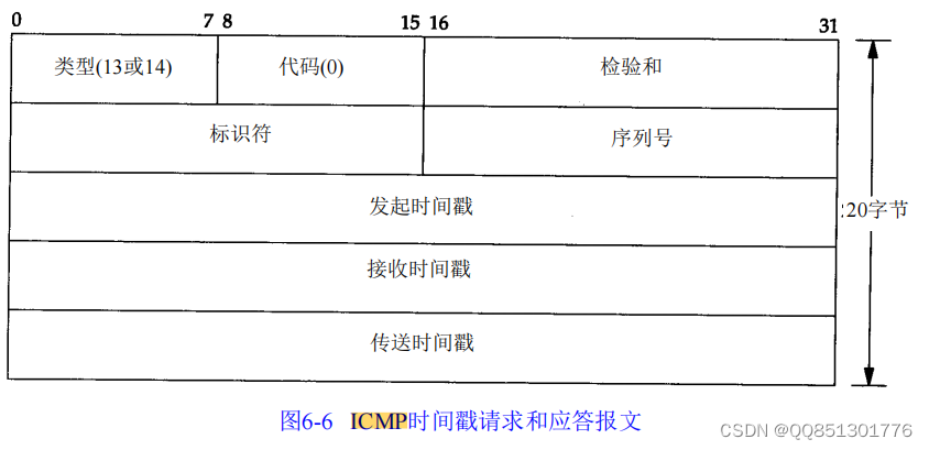 I C M P时间戳请求和应答报文格式如图 6 - 6所示。