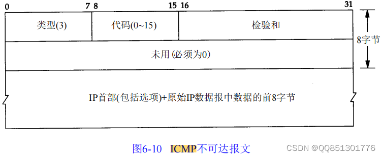 I C M P不可达报文的一般格式如图 6 - 1 0所示。