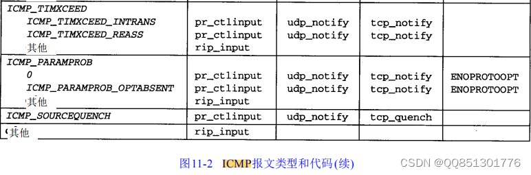 - T C P栏是为T C P插口处理I C M P报文的函数。注意,是 t c p _ q u e n c h处理I C M P源站抑制差错,而不是t c p _ n o t i f y。