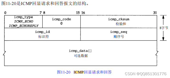 检验和字段覆盖整个ICMP报文。使用的算法与我们在首部检验和算法相同。ICMP的检验和是必需的。