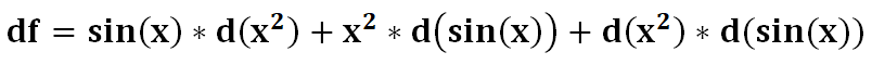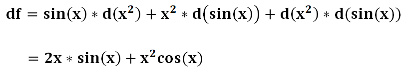 根据之前的经验可以得知:d(x^2)*d(sin(x))可以被忽略,所以函数f(x) = sin(x) * x^2的求导可以得出: