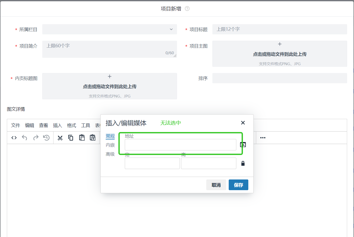 问题:富文本编辑器上传弹框中的input点击 会聚焦到后面的input框里