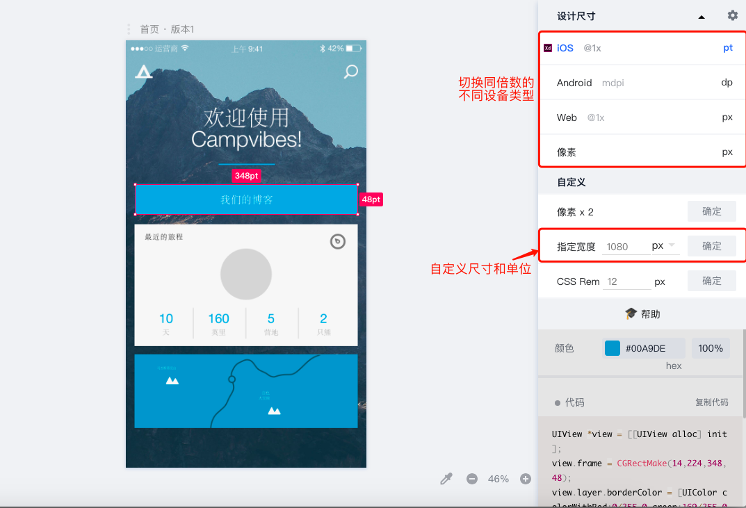 自定义尺寸:在自定高度里面输入尺寸就可以变成任何想要的设计尺寸和切换相应代码