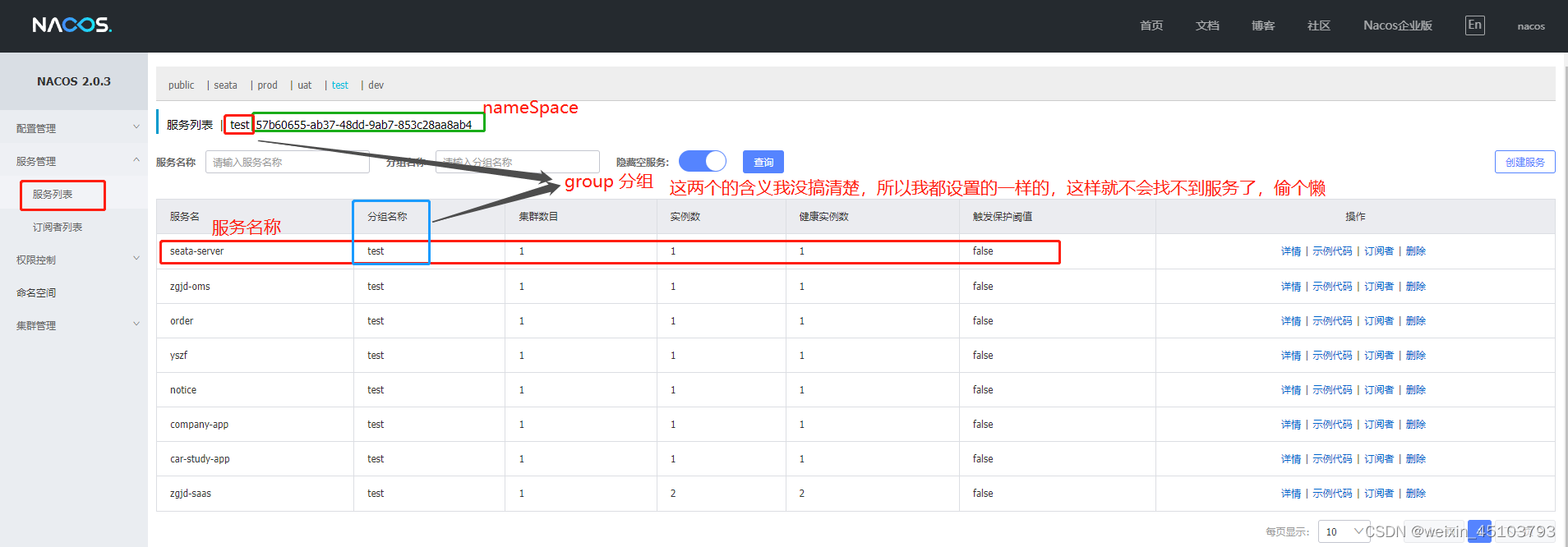 registry.nacos. namespace = "57b60655-ab37-48dd-9ab7-xxxc28aa8ab4" 下面有图