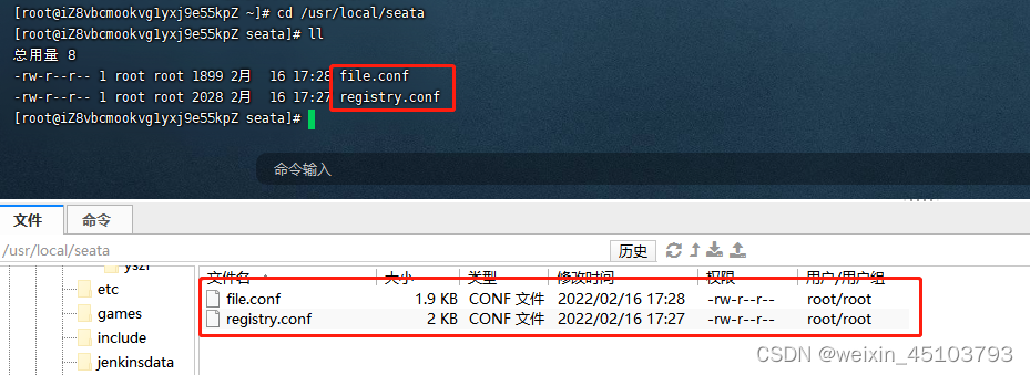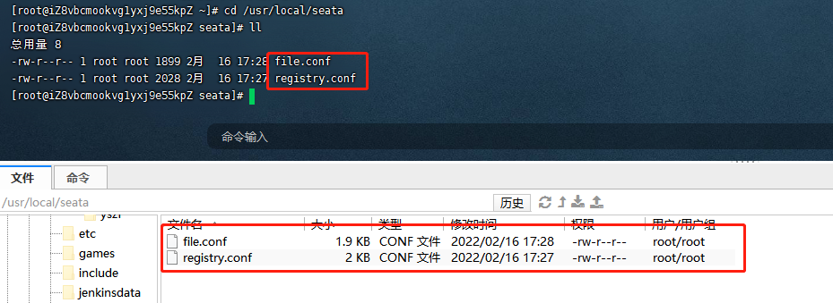 4.1、拷贝容器内文件file.conf到容器外的/usr/local/seata径下