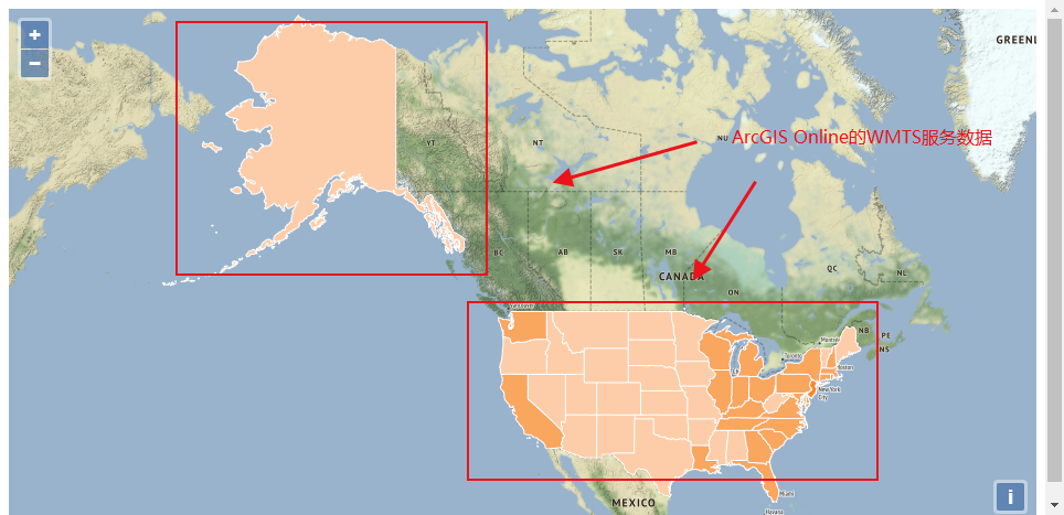 ArcGIS Online中的美国地图的WMTS服务基地址为: