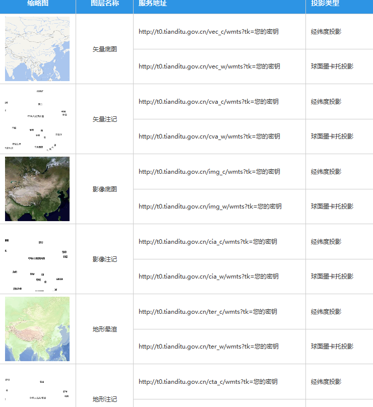 天地图的大部分地理数据都是依据WMTS规范发布: