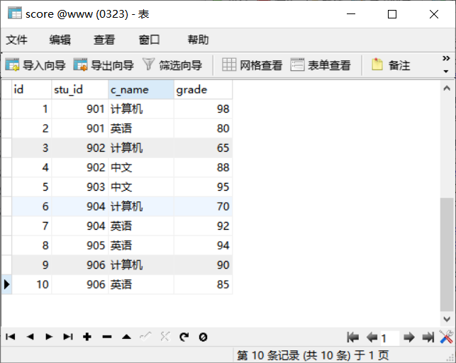 INSERT INTO score VALUES(NULL,904, '计算机',70);