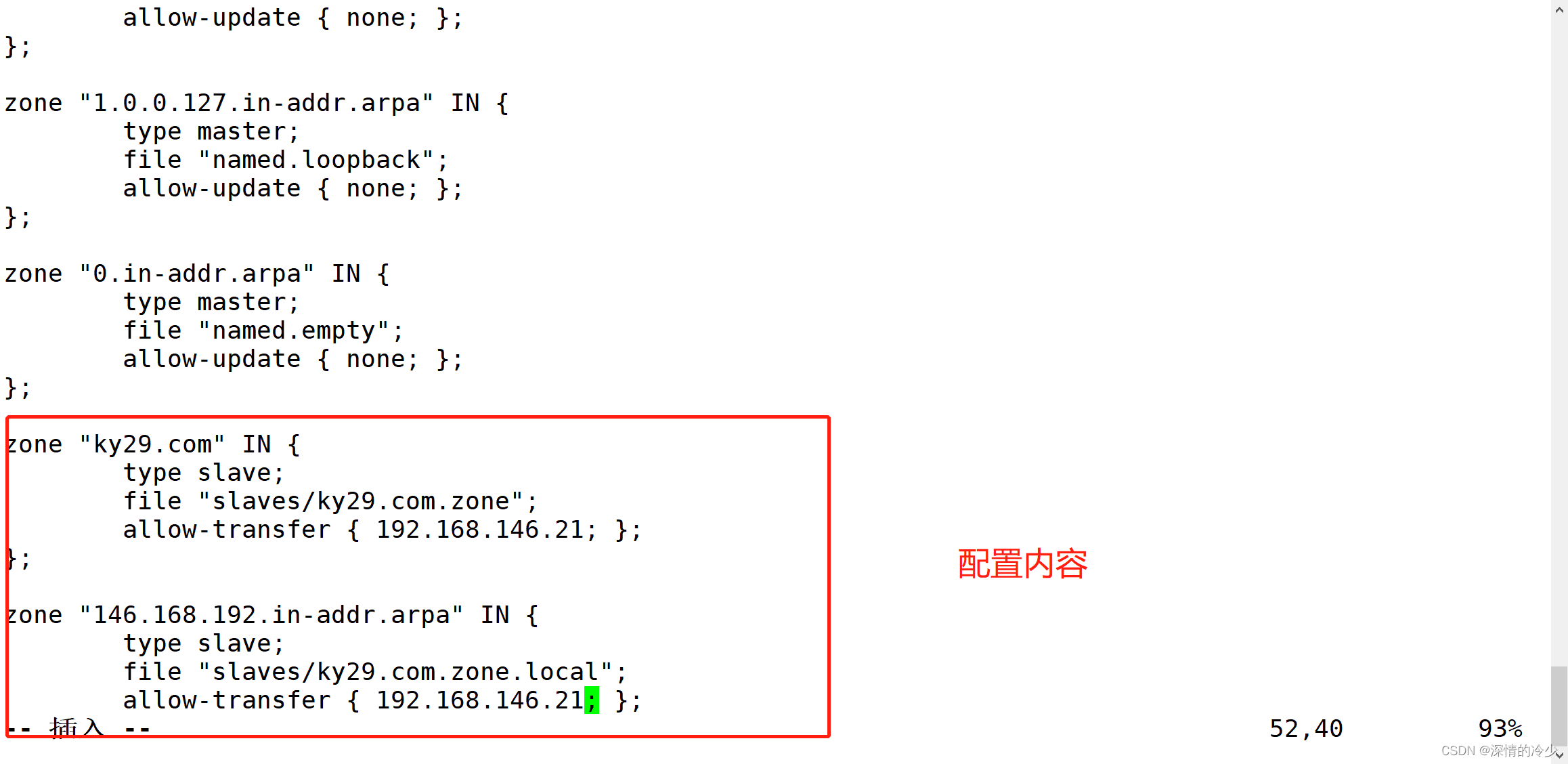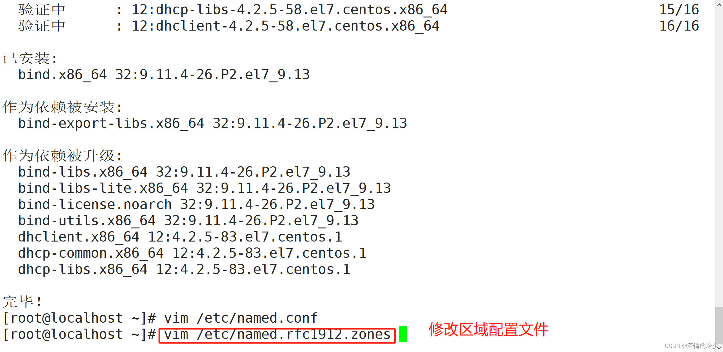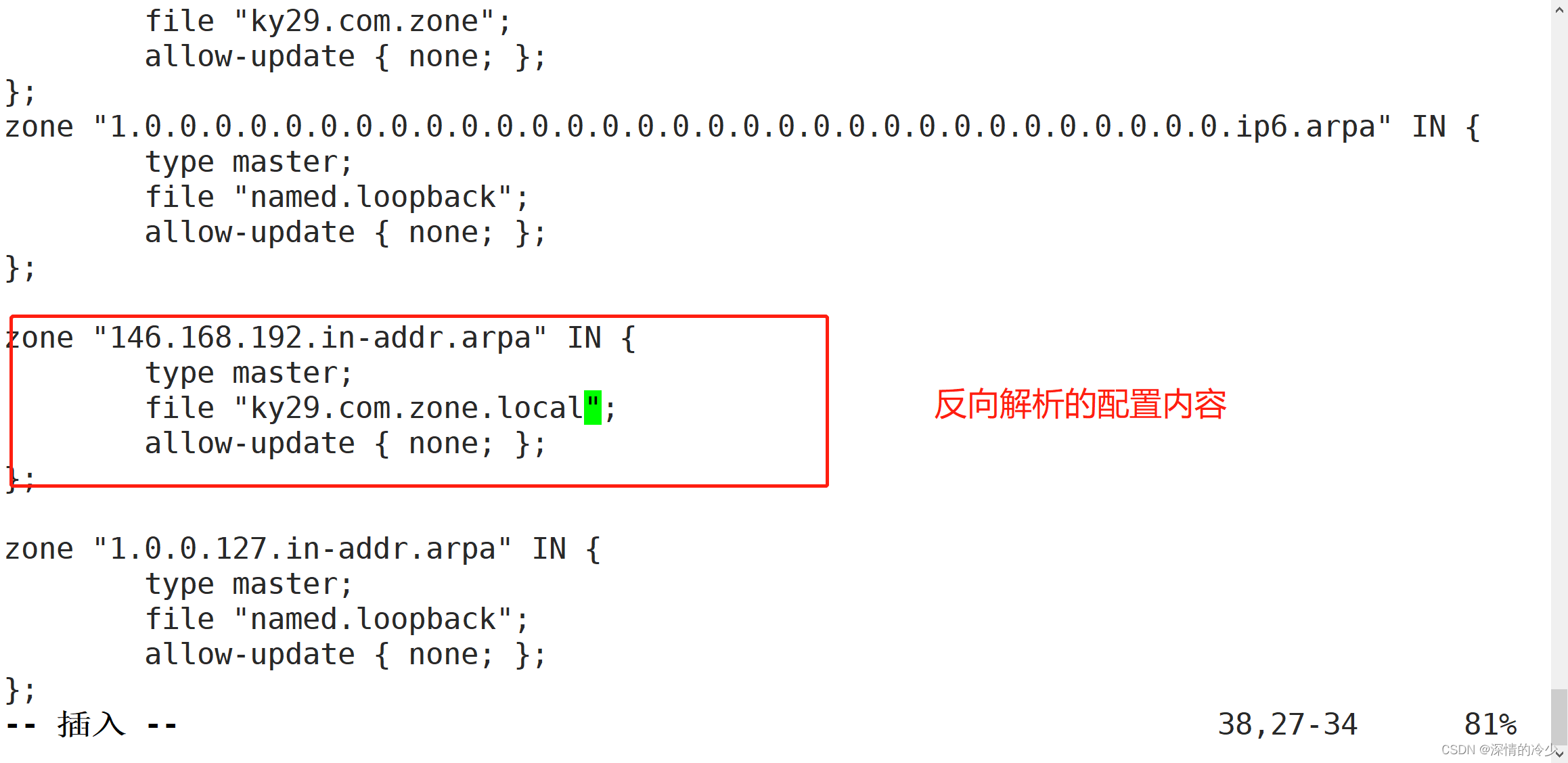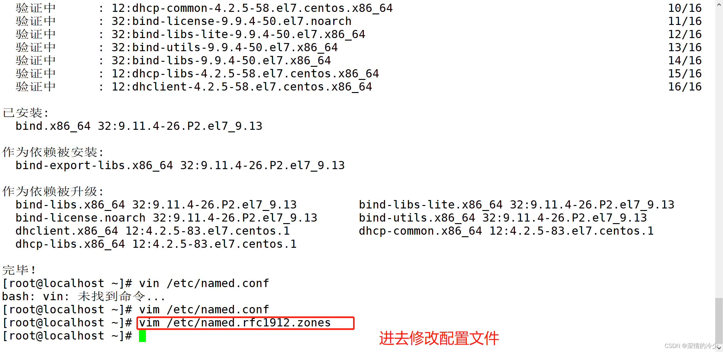 进入区域配置文件进行修改vim /etc/named.rfc1912.zones