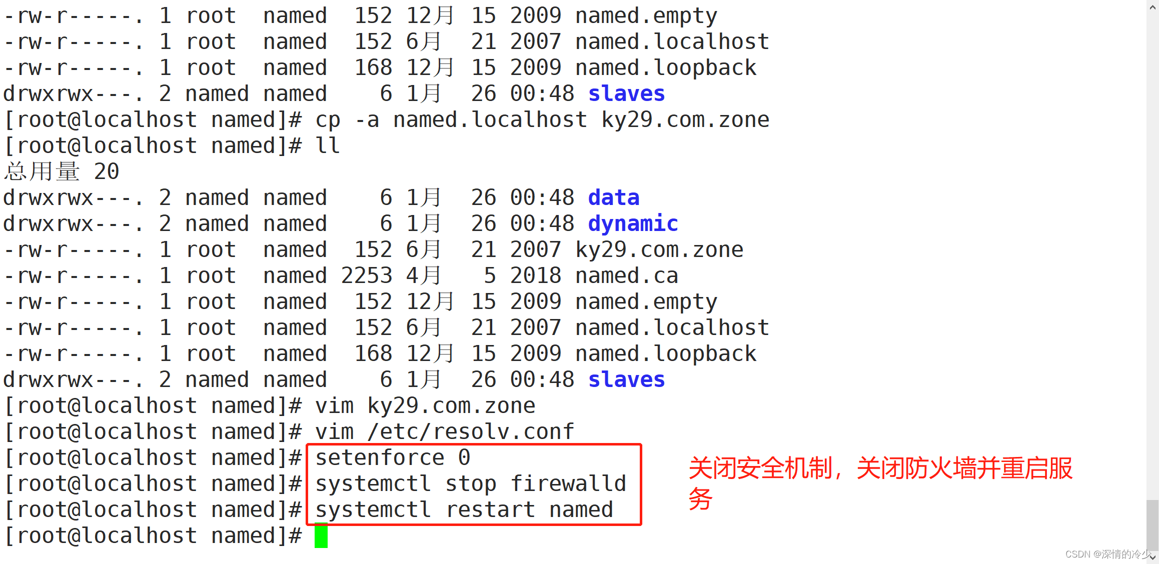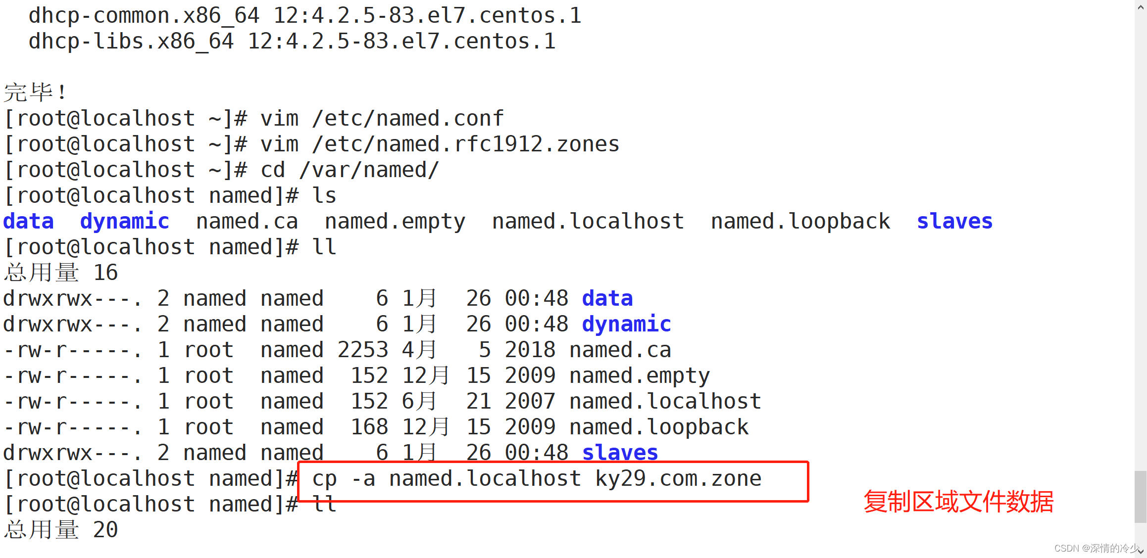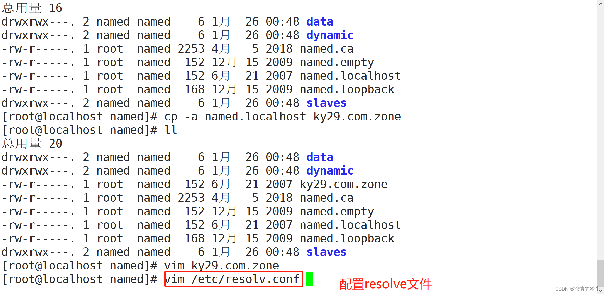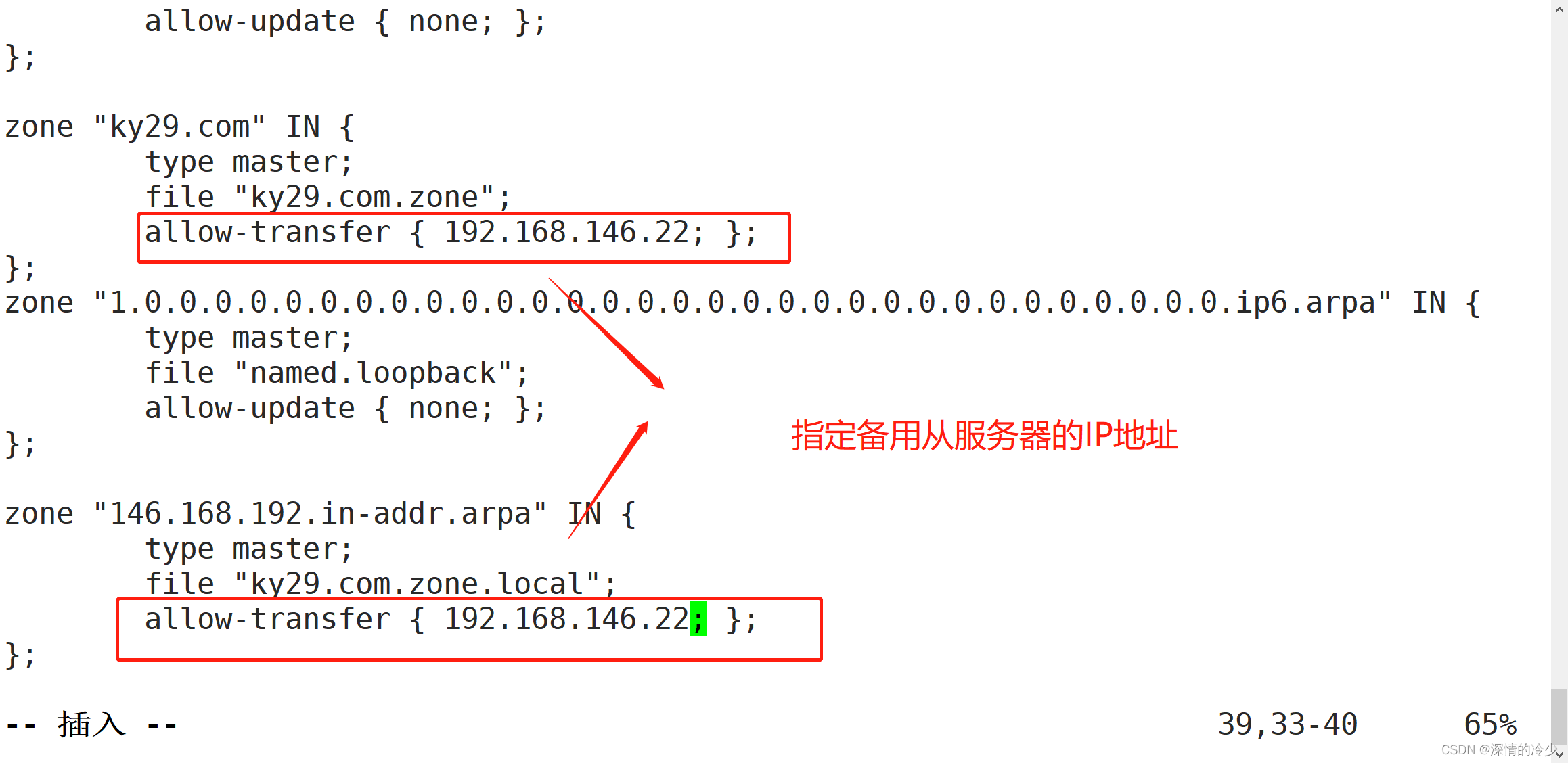 进入区域配置文件进行修改vim /etc/named.rfc1912.zones
