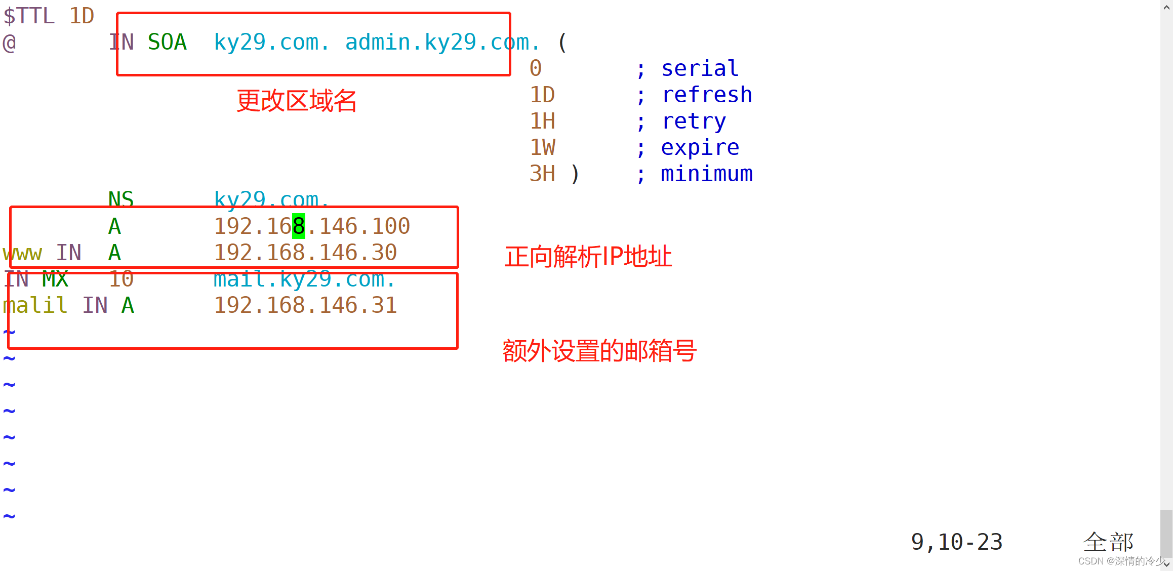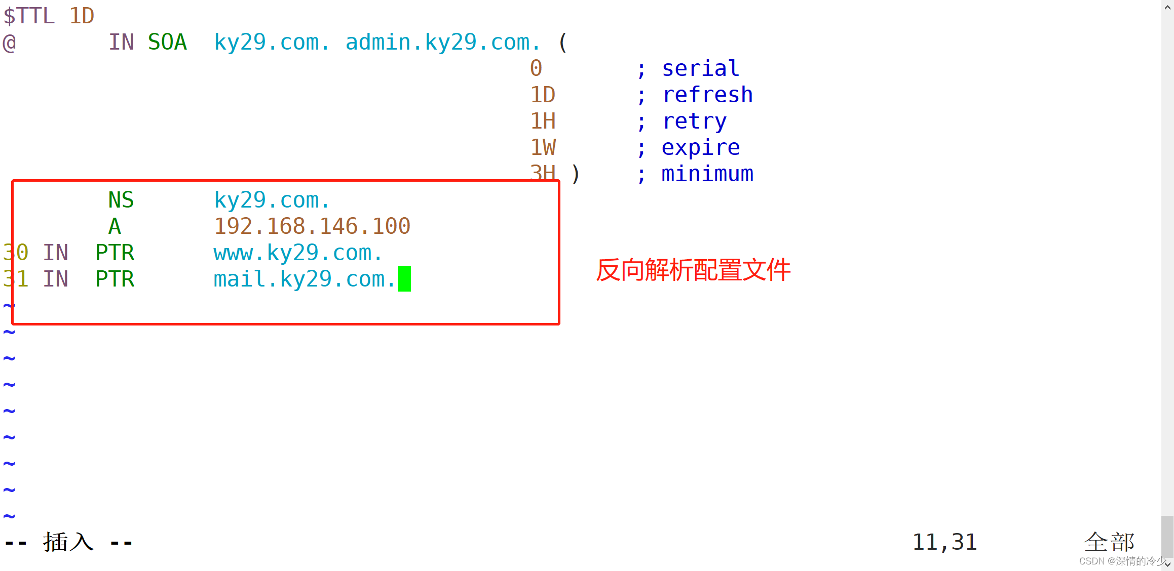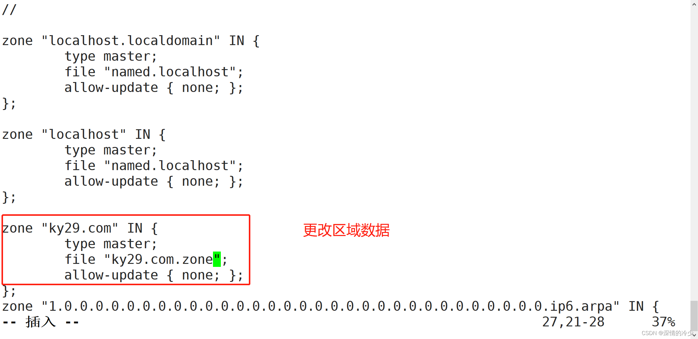 进入配置文件ky29.com.zone进行修改 vim ky29.com.zone