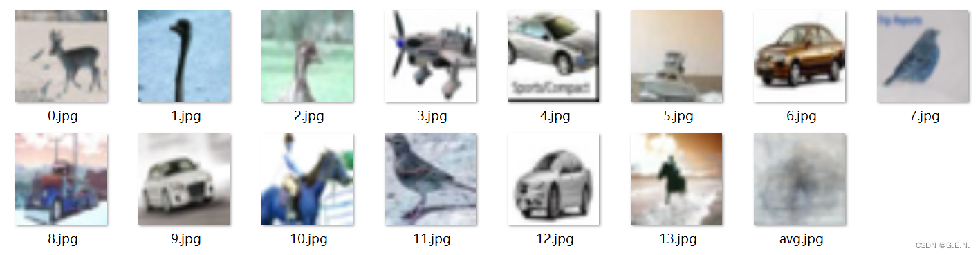 其中,avg.jpg是质心,是簇内所有图像的平均值,是对簇内信息的抽象反映。