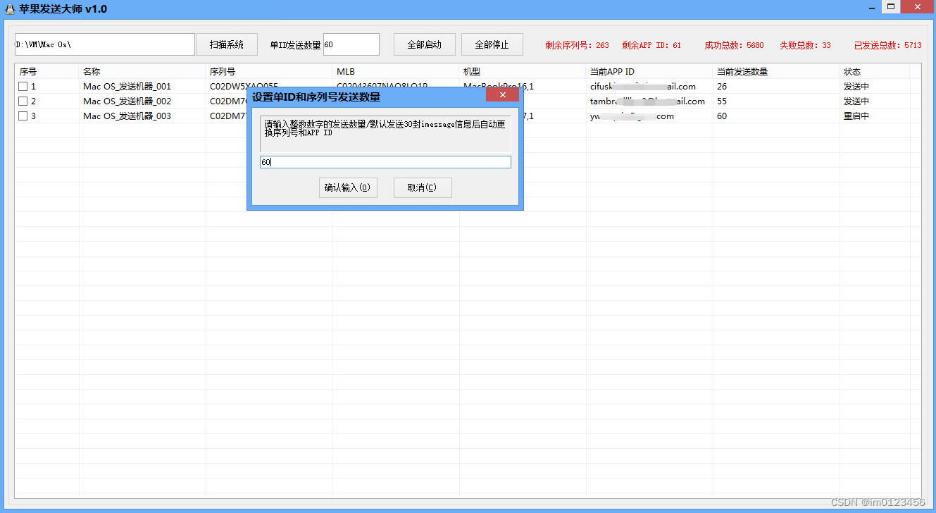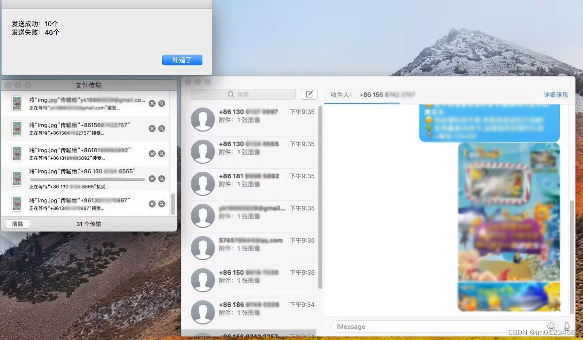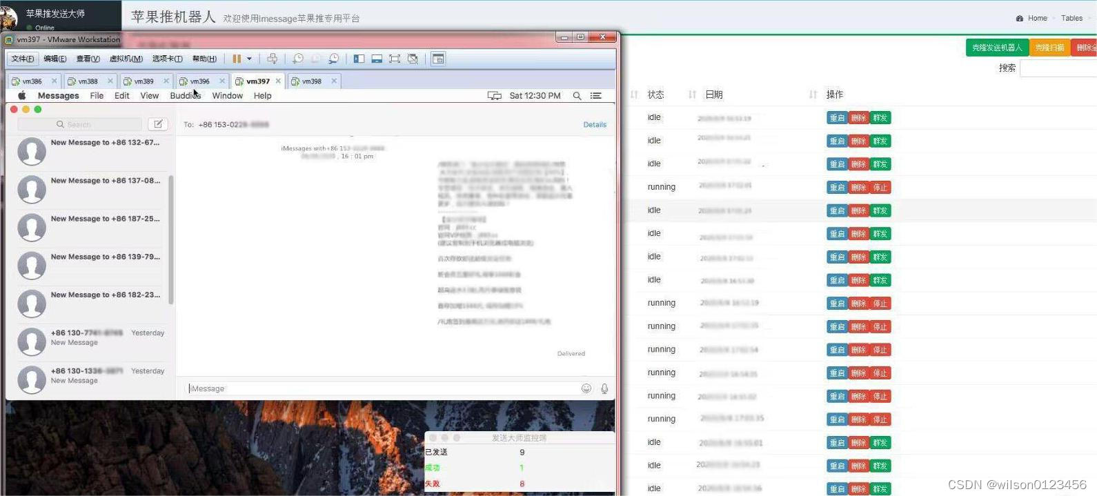 (3)电脑端Mac Os群发Imessages,全自动检测数据脚本,全自动群发脚本,PC端全套无限群发imessages系统,新老ID皆可激活使用imessages,有意可联系全套远程安装部署。