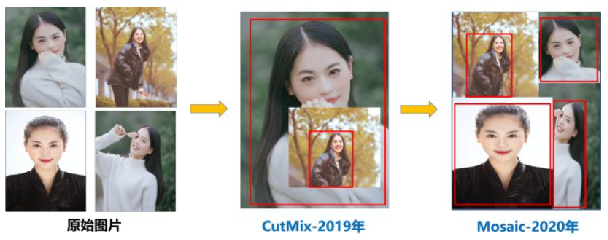 Mosaic是YOLOv4中提出的一种数据增强方式,属于Cutmix的扩展。Cutmix是两张图像的混合,即Cutout仅有一块区域,而Mosaic是4张图像的混合,一张图相当于4张图