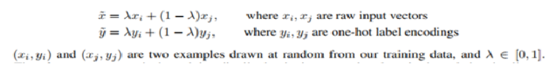 (xi,yi)和(xj,yj)是从训练数据中随机抽取的两个样本,且λ∈[0,1]。因此,mixup通过结合先验知识,即特征向量的线性插值应导致相关标签的线性插值,来扩展训练分布