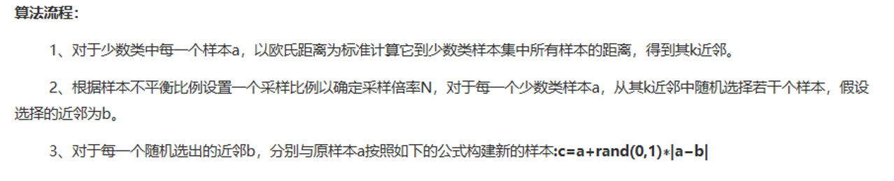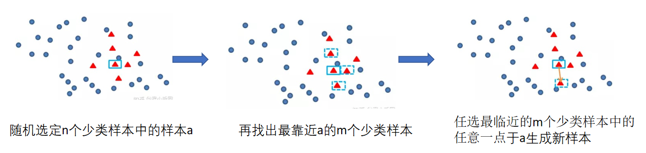 SMOTE:是一种通过线性插的方法,对少数类样本进行分析并根据少数类样本人工合成新样本添加到数据集中,解决数据不均衡问题的方法。