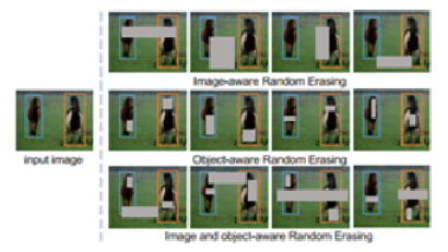 目标检测 :在原图中随机选择擦除区域; 在每个b-box上独立执行random erasing,即此时b-box相对于图像一样成为一个独立的个体; 在图像和目标b-box上随机选择擦除区域。
