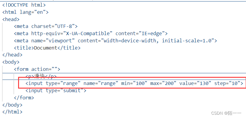 range是滑块属性值,接下来是属性介绍,min是滑块最左边代表的值,max是滑块最右边代表的值,默认滑块最左边是0,最右边是100,现在设置了以后,滑块就从min到max了,那个value设置的是初始值,step是步长,从左到右滑动滑块默认步长是1,现在设置了步长,那滑块滑一次就是10,。