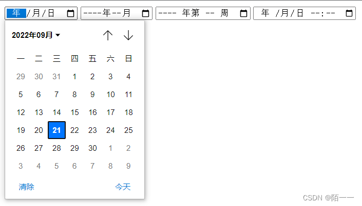 结果运行出来就会让你选择日期,type=“datetime-local”这个属性从年具体到分钟选择。