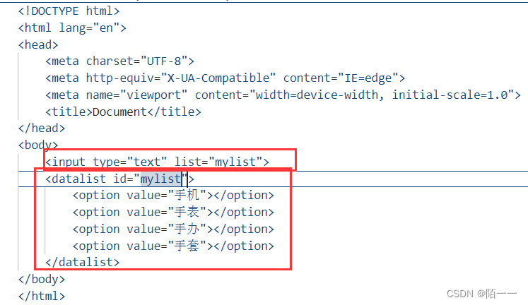 这样在搜索框里搜索“手”,就会出现数据列表让你选择,上面那个datalist标签和input标签是通过id=“mylist”联系起来的。